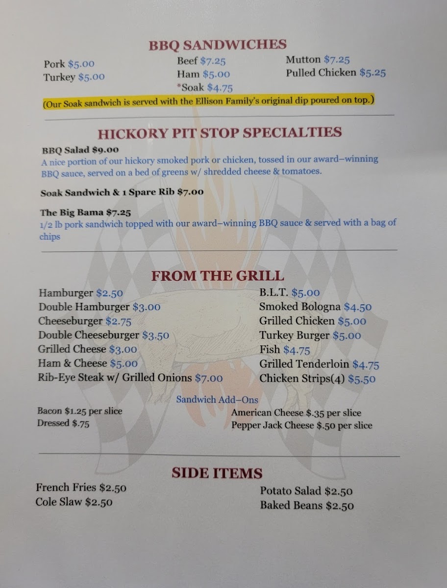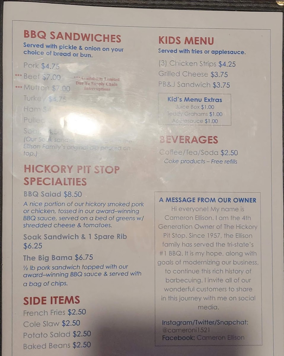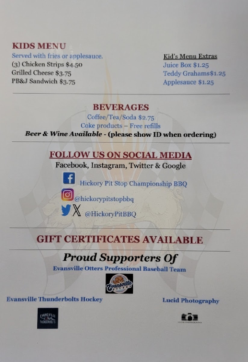 Hickory Pit Stop BBQ Menu (2025 Update)