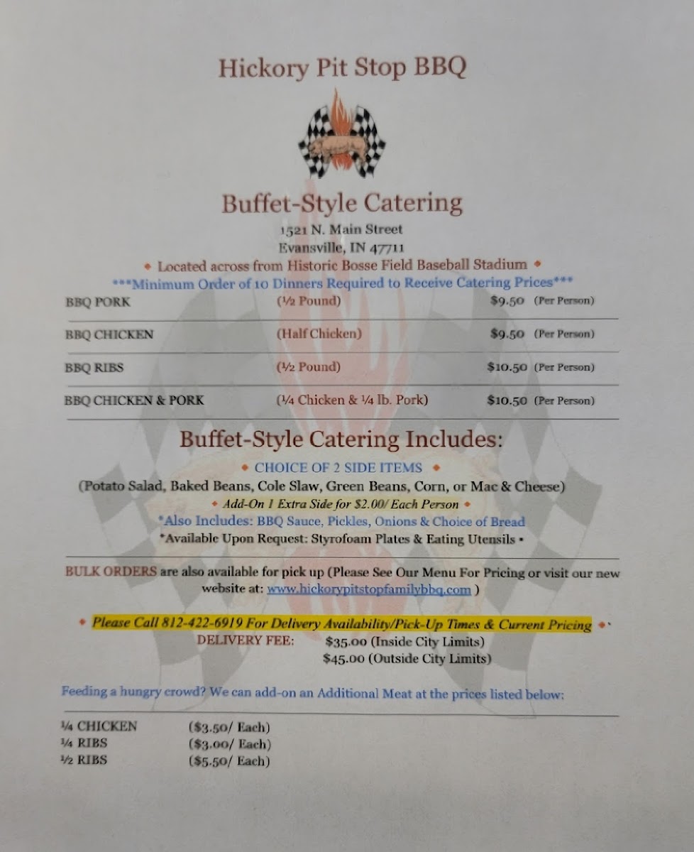 Welcome to Hickory Pit Stop BBQ, your ultimate destination for authentic BBQ in Evansville, Indiana. Nestled at 1521 N Main St, this gem offers a straightforward yet delightful menu that captures the essence of traditional barbecue. From the tender BBQ Beef and Pork sandwiches to the unique BBQ Soak sandwich, each bite is infused with the Ellison Family's award-winning sauce.
